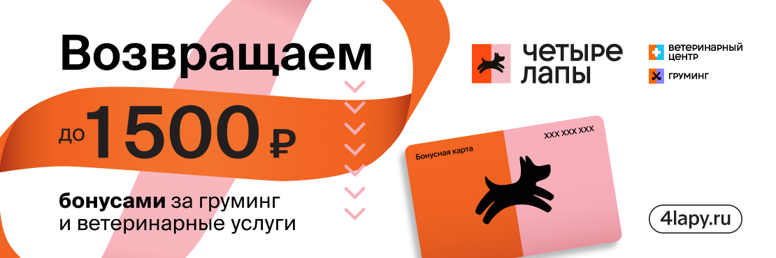 • Возвращаем до 1500 бонусов за ветеринарные услуги и груминг